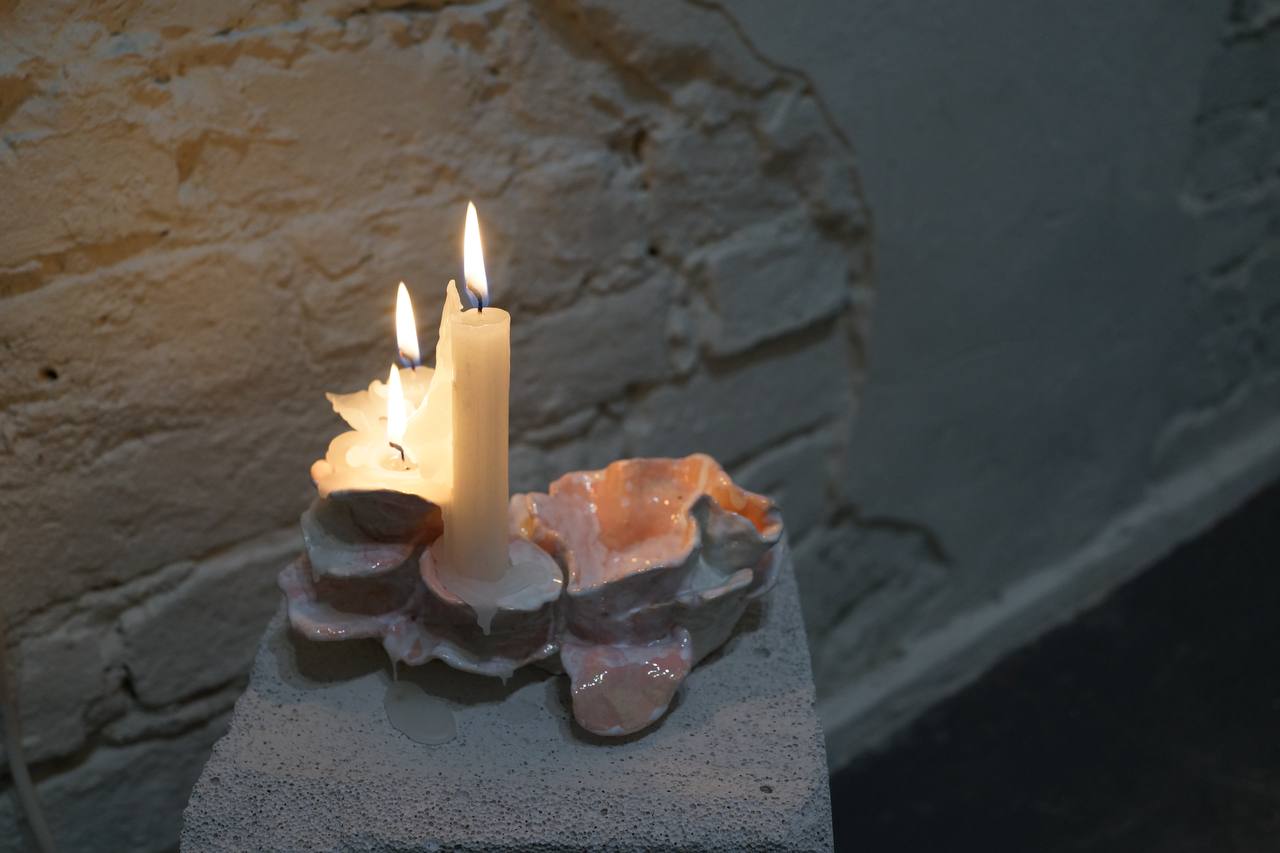 The exhibition brings together graphic works, ceramic objects, photographic documentation, and text, forming an intimate space for reflection on wartime realities, inner transformations, and new ways of perceiving beauty.